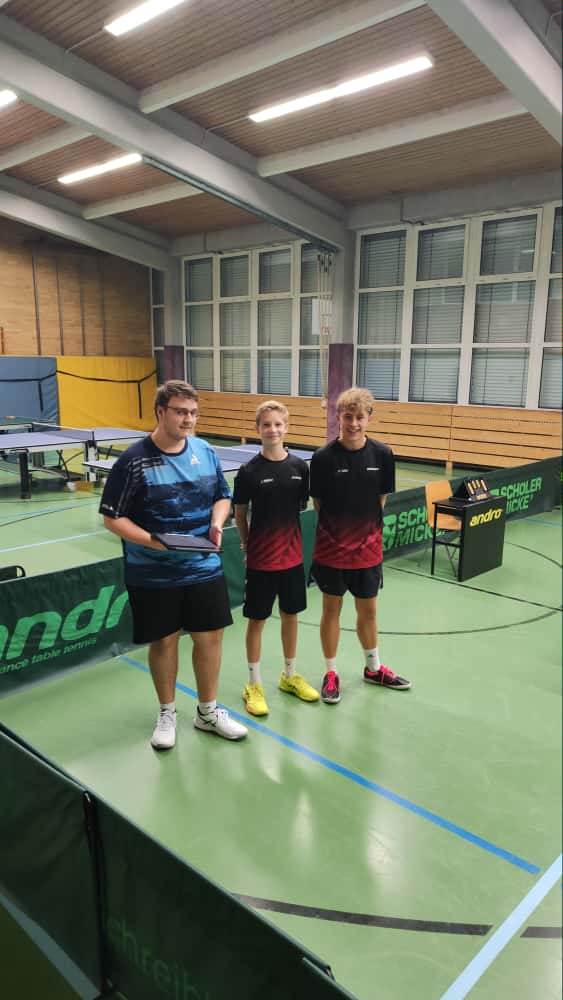 An diesem Wochenende startete auch für die neue Jungen 13 Mannschaft die Saison mit dem ersten Spiel gegen die TTF aus Stühlingen. Mit Lilly Müller, Neo Rehling und Vincent Leyhr waren alle drei aufgestellten Spieler dabei. Auch für die Tischtennisfreunde war es der Saisonauftakt. Neo und Vincent durften sich zu Beginn direkt gemeinsam im Doppel beweisen. Diese Challenge konnten die zwei mit größter Souveränität lösen und gewannen ihr Doppel mit nur fünf Ballverlusten gewinnen. Lilly machte es hingegen in ihrem ersten Einzel deutlich spannender, konnte es aber im fünften Satz für sich entscheiden. In den folgenden beiden einzeln musste man sich dann aber des erste Mal geschlagen geben. Während Vincent sein Einzel im vierten Satz gegen die Nummer eins des Gegners verlor, konnte Neo seines deutlich gewinnen. Auch in den weiteren Einzel konnten die drei vom TV glänzen und lediglich Neo und Lilly mussten sich wie auch schon Vincent zuvor gegen Florian Geng geschlagen geben. So stand am Ende ein 3:7 aus der Sicht der Gastgeber im Spielbericht. Ein gelungener Saisonauftakt und ein gelungenes erstes spiel der drei. Weiter so!